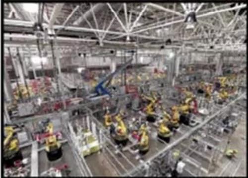 這些照片來自于特斯拉致股東的PDF信函中,或許是出于保密的原因,特斯拉公布的照片清晰度較低,但依然可以看出目前上海工廠的工程進展迅速。一些生產機器人已經被搬入工廠并組裝完畢,還能看到一臺大型沖壓機,以生產Model 3車身零部件。